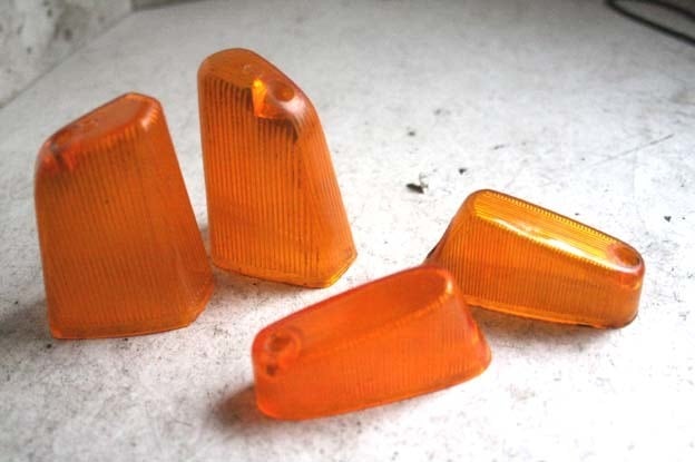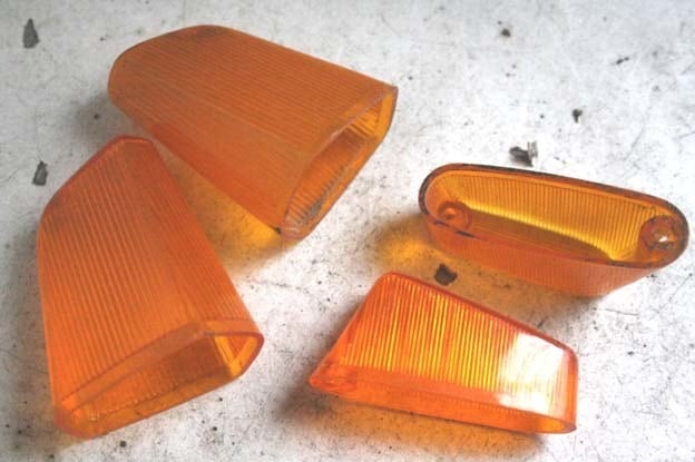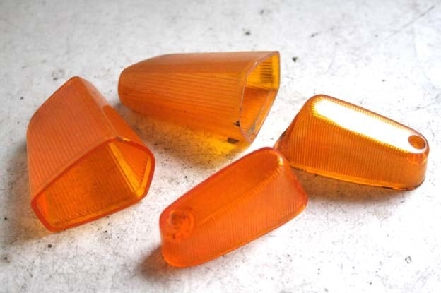 1950s、60年代の、未使用のカブC100等用の未使用?ウインカーレンズ、前後1セット(1台分)です。